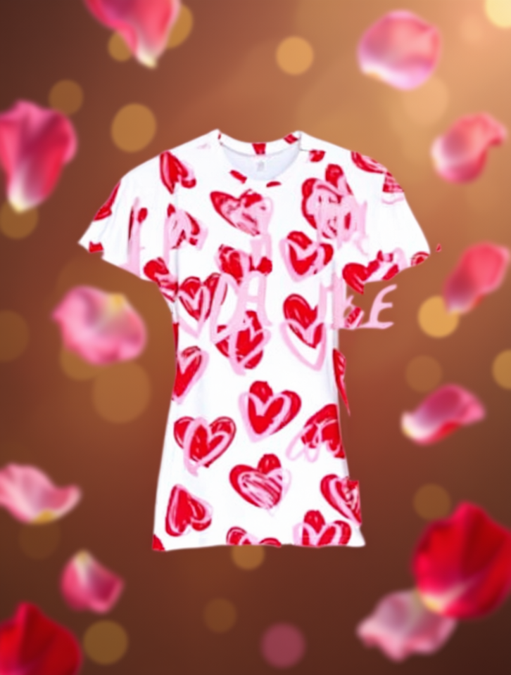 T-shirt da donna a maniche corte, girocollo, con stampa a cuore, casual, 100% cotone jersey, per San Valentino, primavera estate