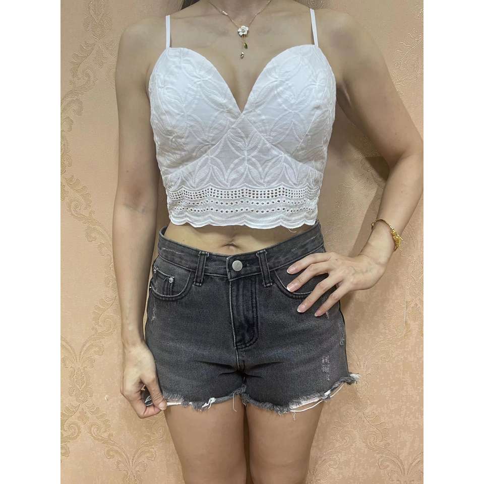 Women's Luxury Lace Crop Top Breathable Padded Tank with Adjustable Straps Bow Collar Short Length Casual Wear One Size Fits All