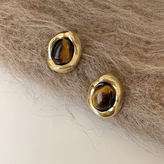 Women's Luxury S925 Silver Needle Earrings with Tiger Eye Stone Phnom Fine Stud Design