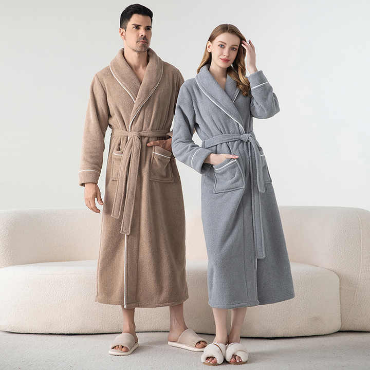 Women's Men's Couple's Pajamas Nightgown Bathrobe European-American Style Ant-velvet Full Length Lapel Collar Autumn Thermal