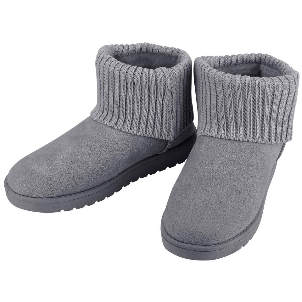 Stivali da Neve da Donna a Metà Polpaccio in Camoscio con Fodera Calda in Peluche Corto, Suola Antiscivolo in Gomma e Design a Maglia