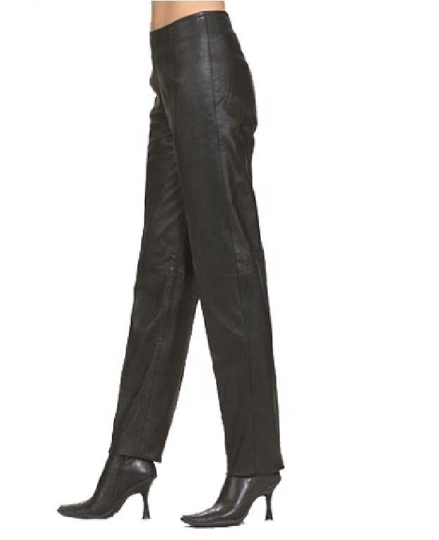Women's Mid-Waist Leather Pants with Anti-Wrinkle Feature Flat Front Style Winter Branded Ladies Low Cut Pants