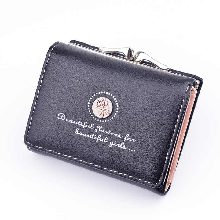 Women's Mini Purse, Retro Flower Female Student's Three Fold Wallet