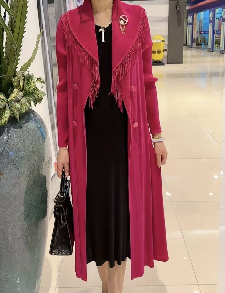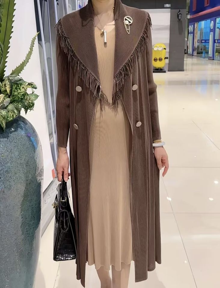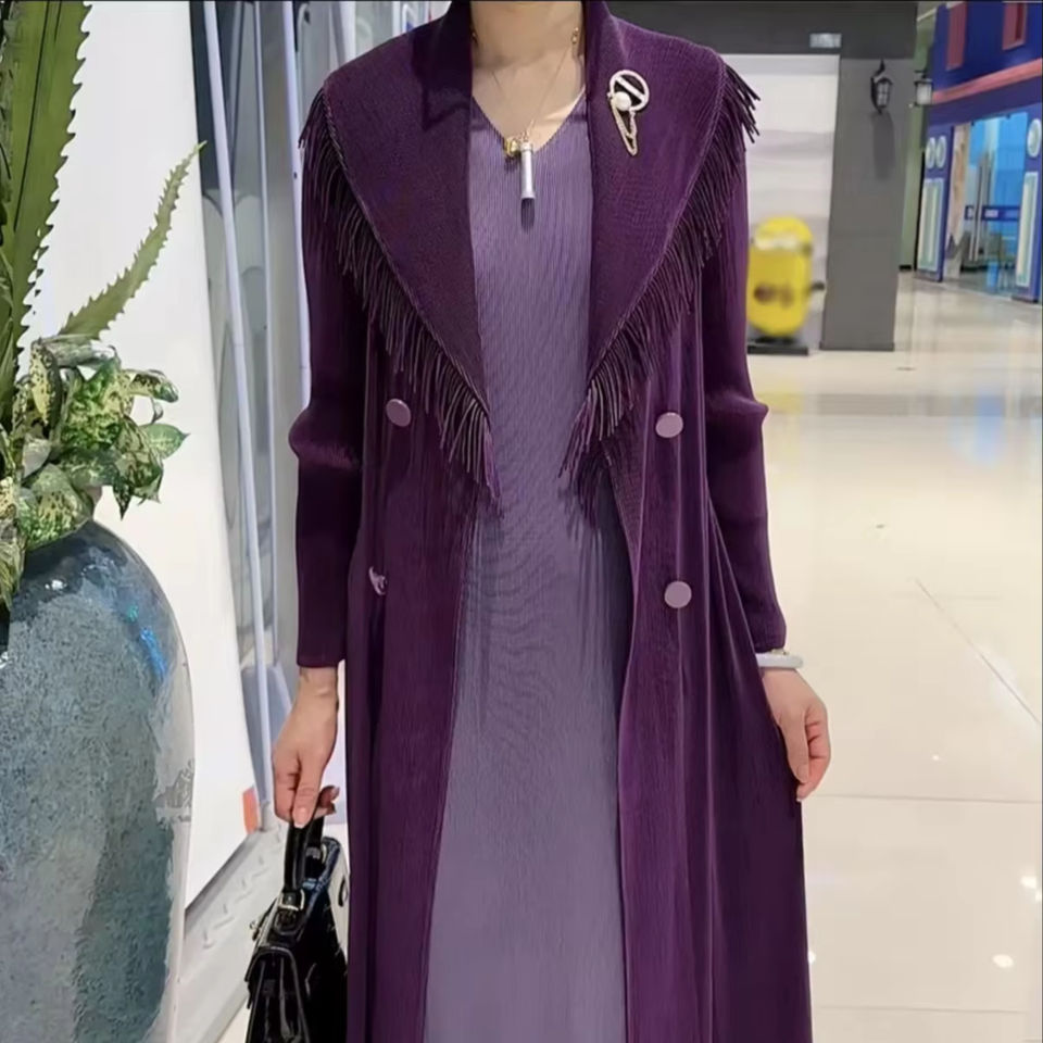 Women's Miyake Pleats Oversized Trench Coat with Tassel Decoration Breathable Waterproof Casual Outerwear Thin for Winter Season