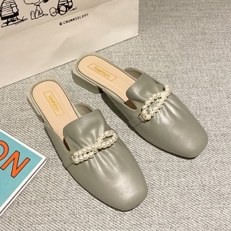 Women's Modern 3-Color Pearl Bead Embellished Strap Mule Bloafer Clogs & Mules BLP13