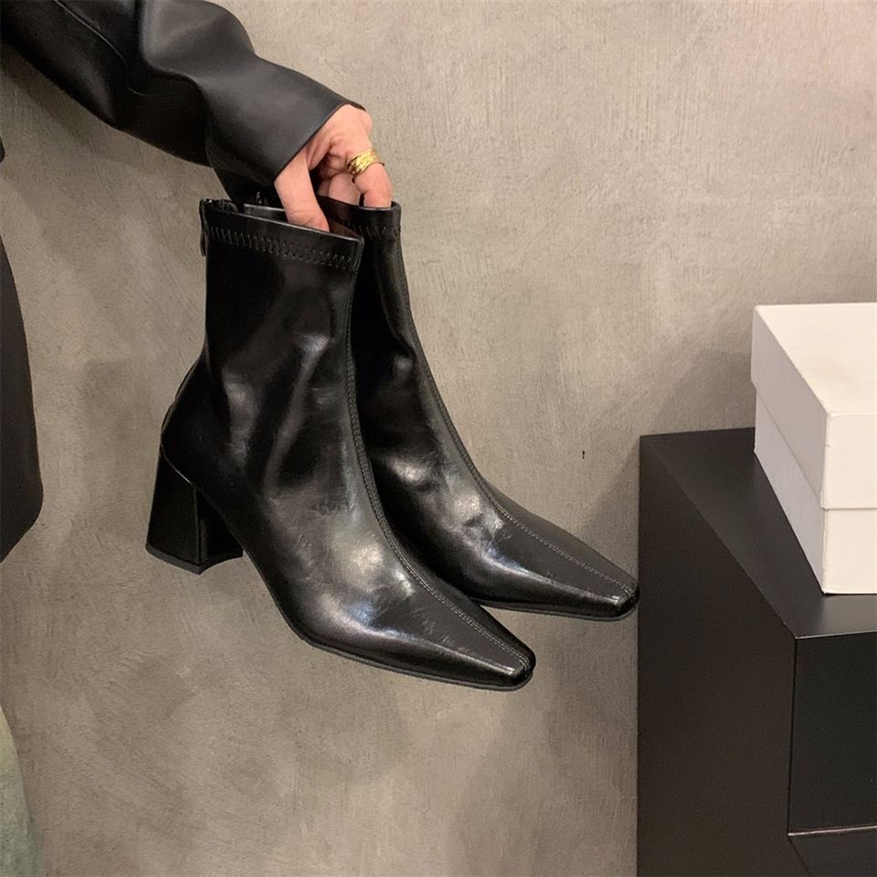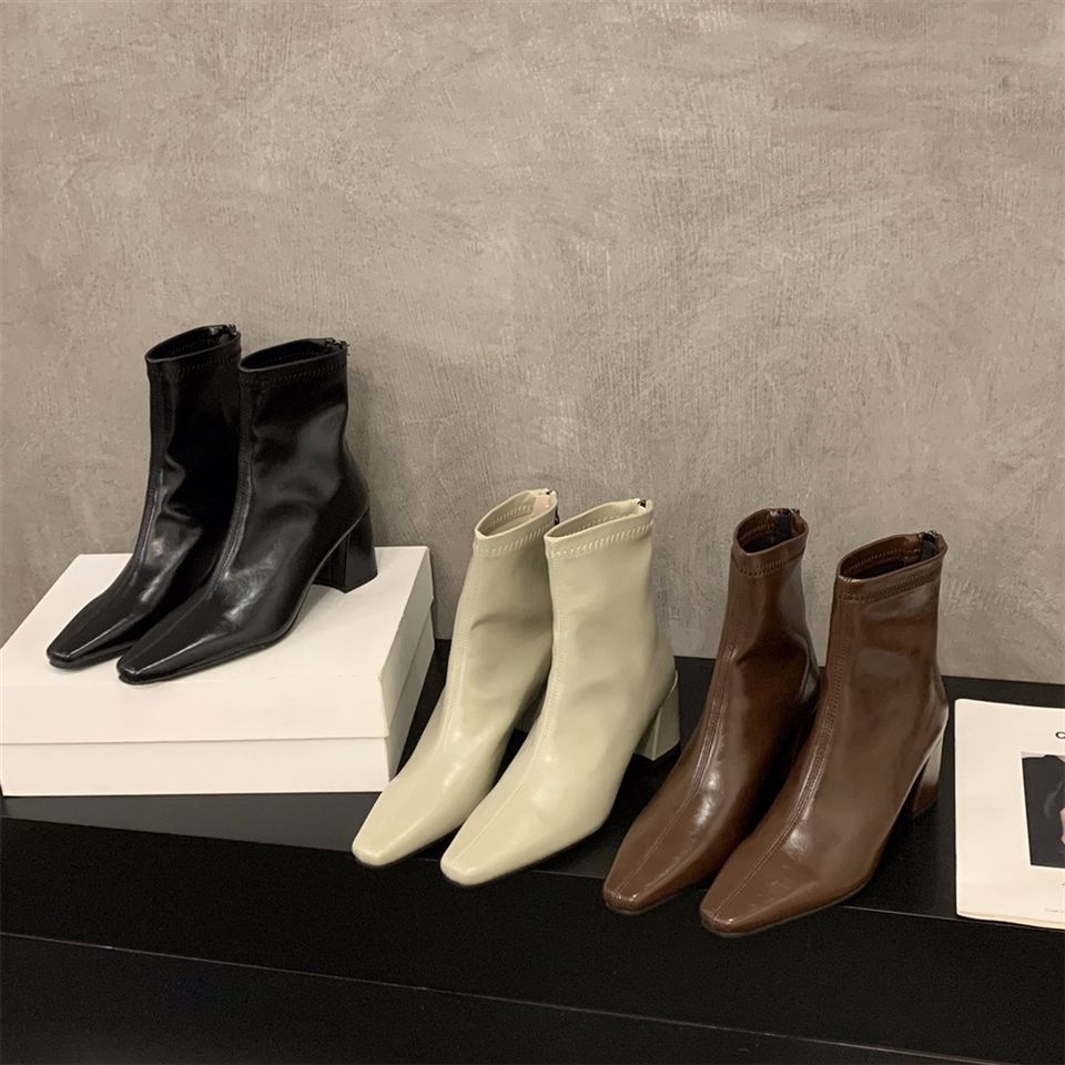 Coreano, Retro, Moda, Lavoro, Tacco spesso, Stivali da stile romano, Zipper-up, Top alto, SportivoStile