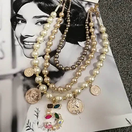 Women's Multilayer Simulated Pearl Choker Necklace Winter Sweater Jewelry