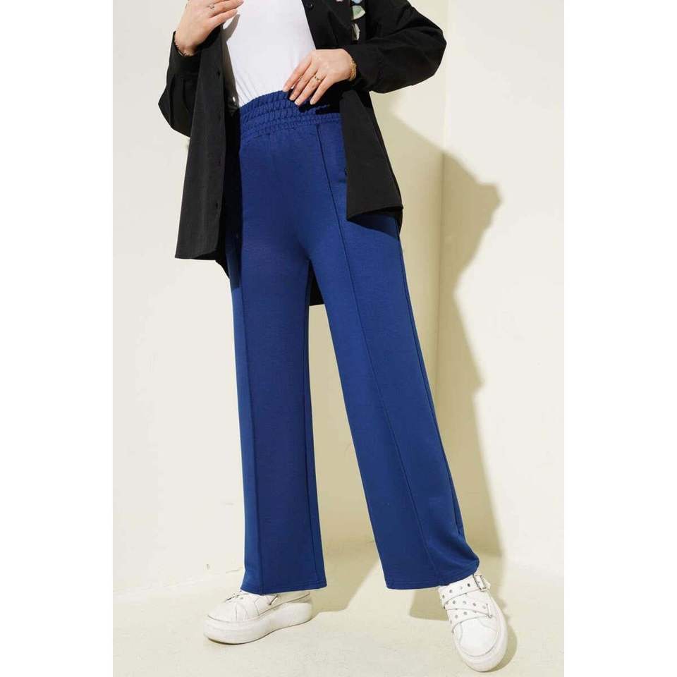 Women's Navy Blue Elasticated Pullover Trousers Girls' Wide Waist Palazzo Pants Wrinkled Print Loose Fit XL 'Parliament' Print