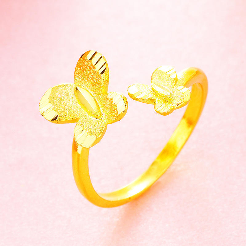 Women's New Gold-Plated Brass Double Butterfly Ring Sandblasted Vacuum Plated Factory Direct Sale