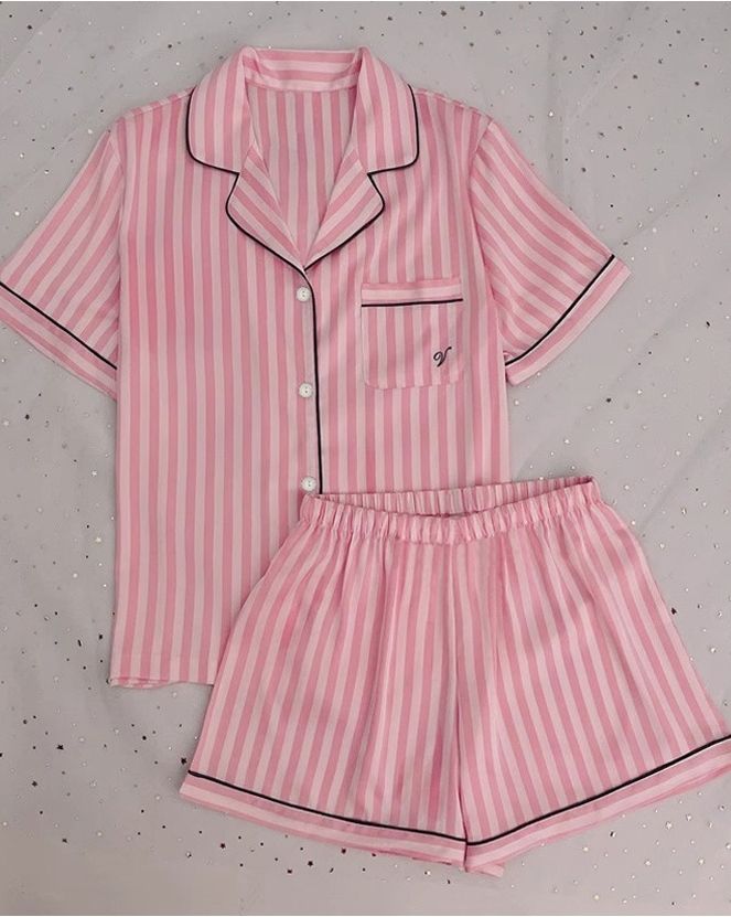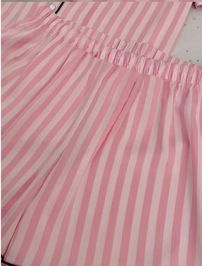 Pigiama da Donna a Due Pezzi a Righe Rosa, Nuovo Stile Estivo, Design Dolce e Carino con Bottoni sul Revers e Chiusura con Vita Elasticizzata