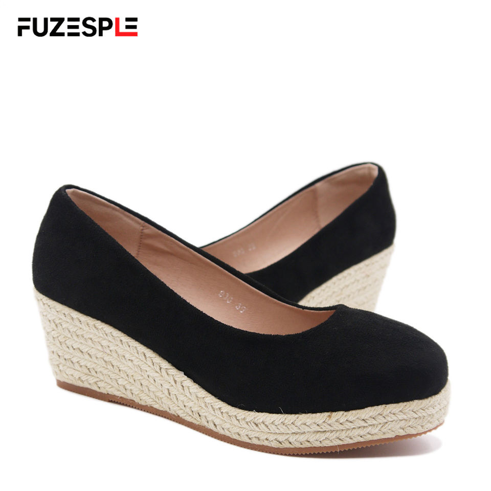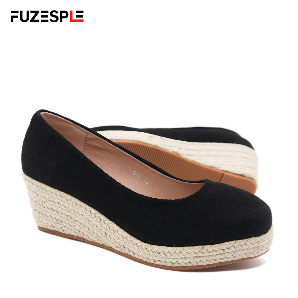 Women's New Wedges for Autumn - 6cm High Heel Slip-On Shoes with Suede Platform Sole Design Espadrilles Black Shoes For Women