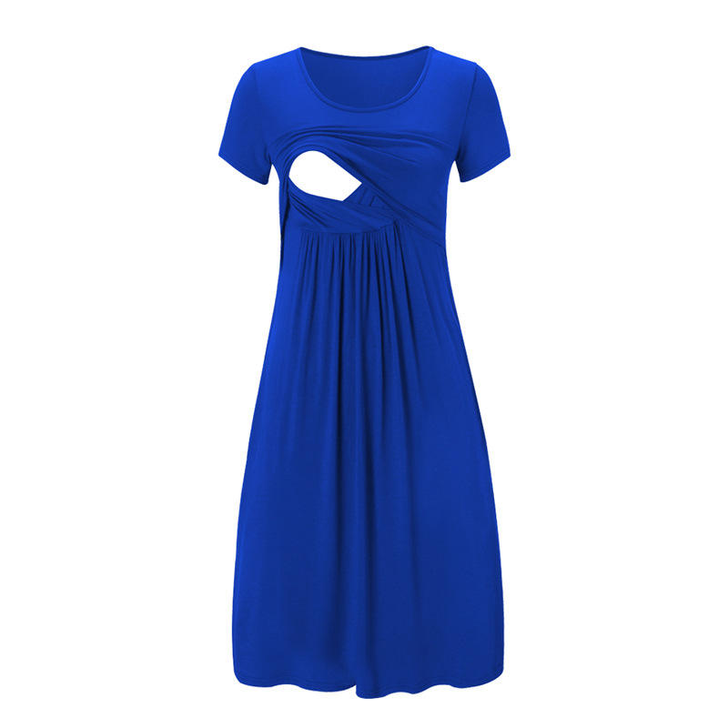 Women's Nursing Clothing a Dress Mama Casual Short Sleeve Wrap Modal Maternity Dress
