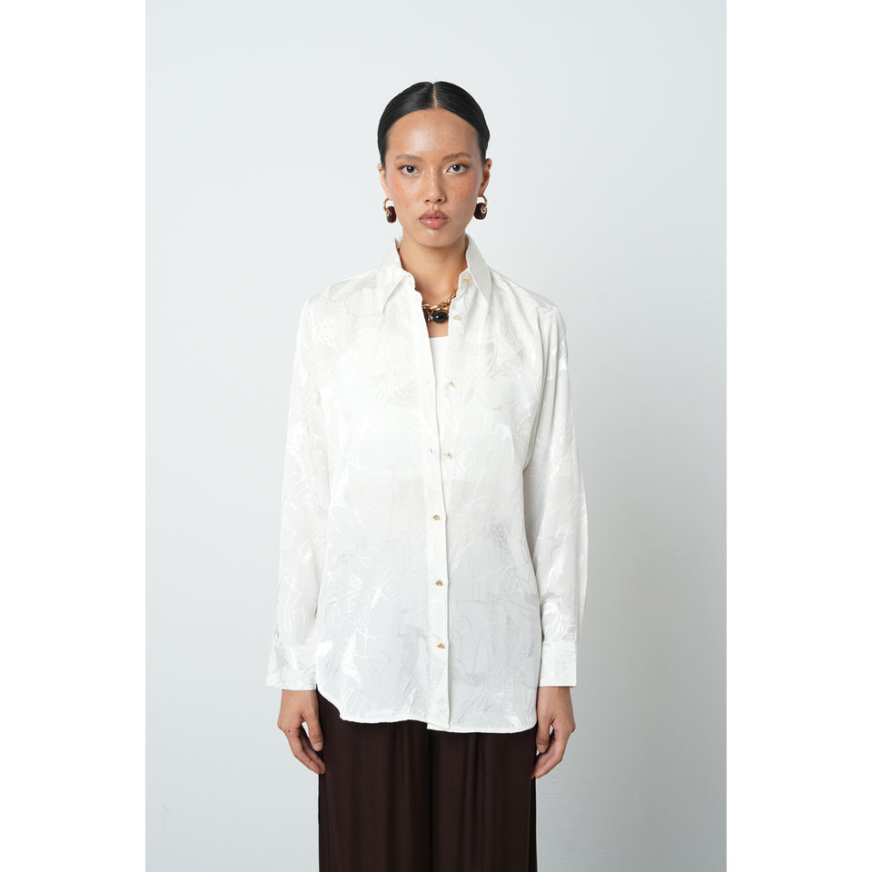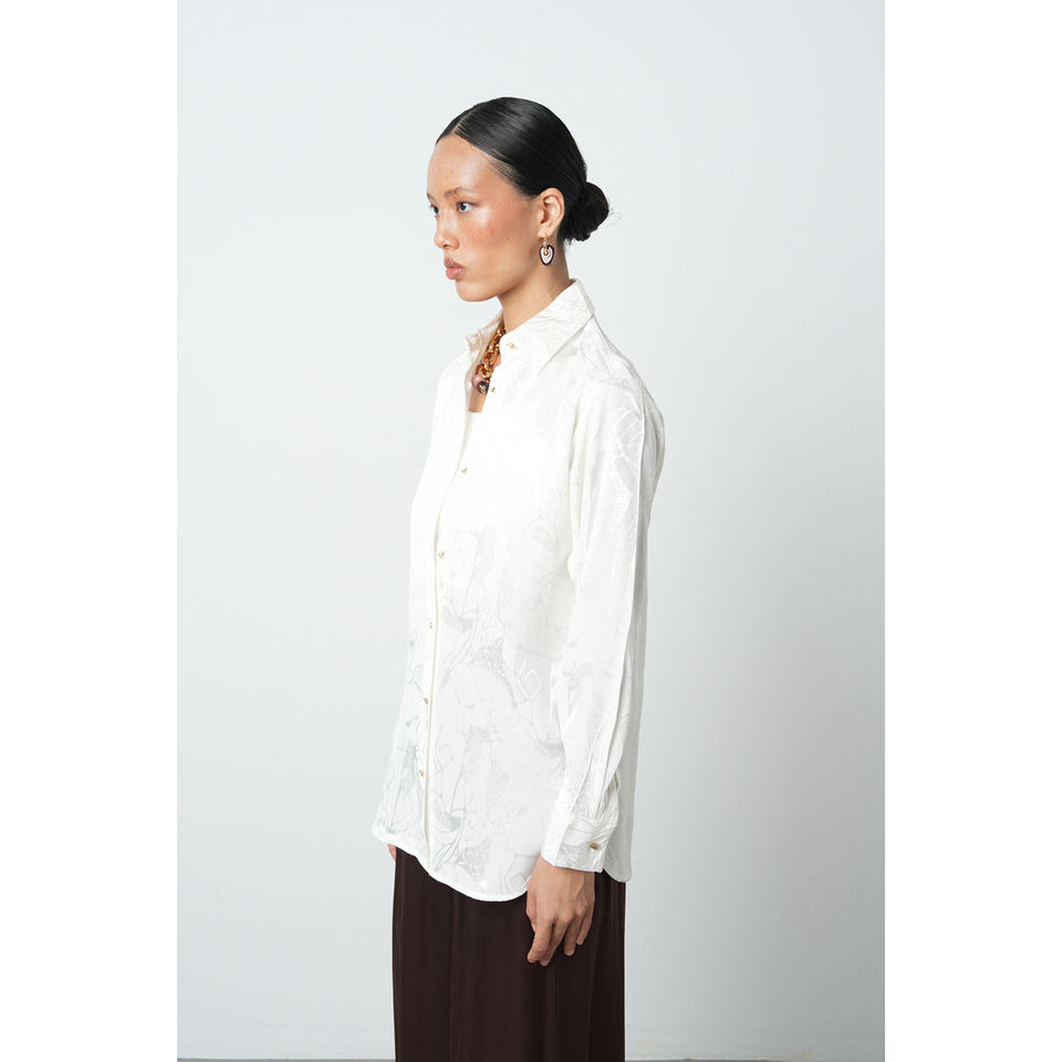 Collezione di camicie da donna con dettagli a bottoni e motivo bianco sporco
