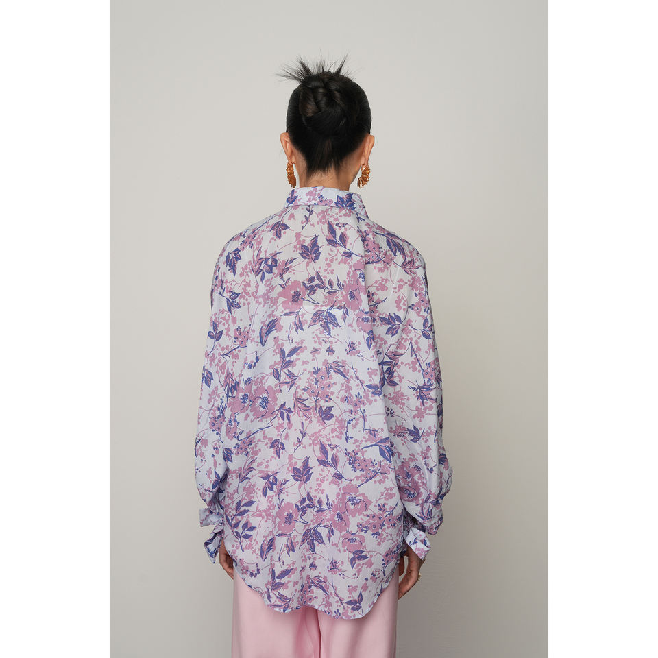 Women's Oversize Blue Shirt with Tie-Sleeved Floral Pattern Design Collection