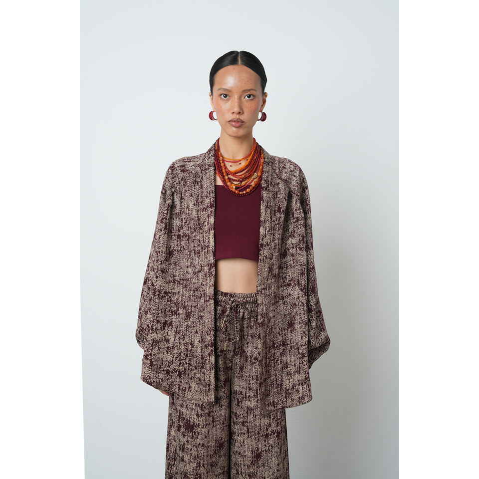 Women's Oversize Burgundy Speckled Hijab Kimono Set