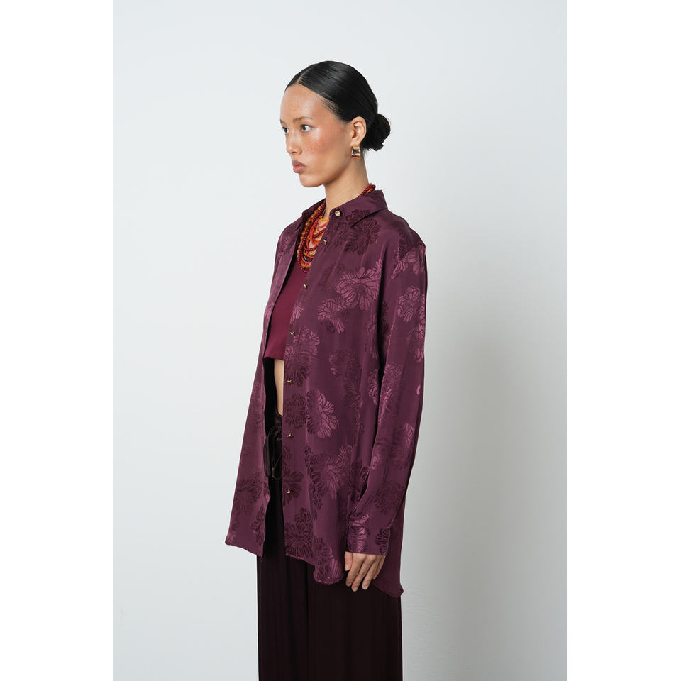 Women's Oversize Floral Pattern Hijab Shirt in Burgundy Design Collection