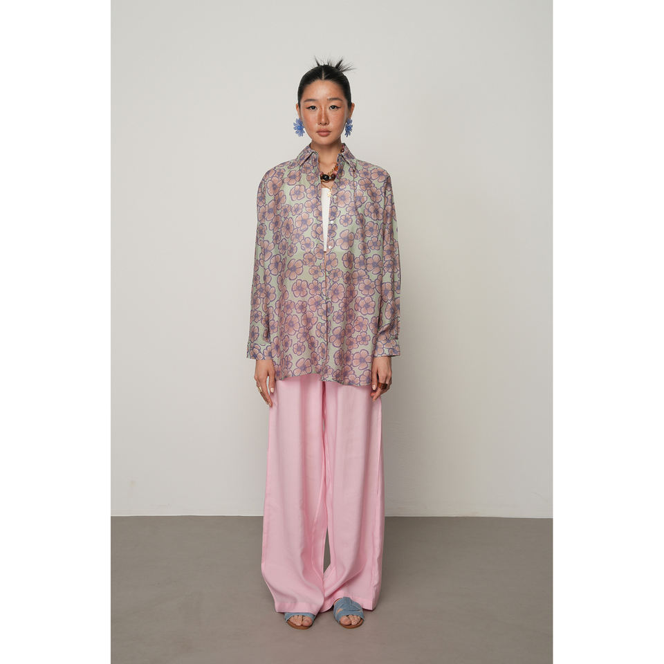Manica Bassa Oversize con Spalline 6 Fiori Ricamati Camicia Ayrobin Blu Disponibile nelle taglie S-M-L-XL