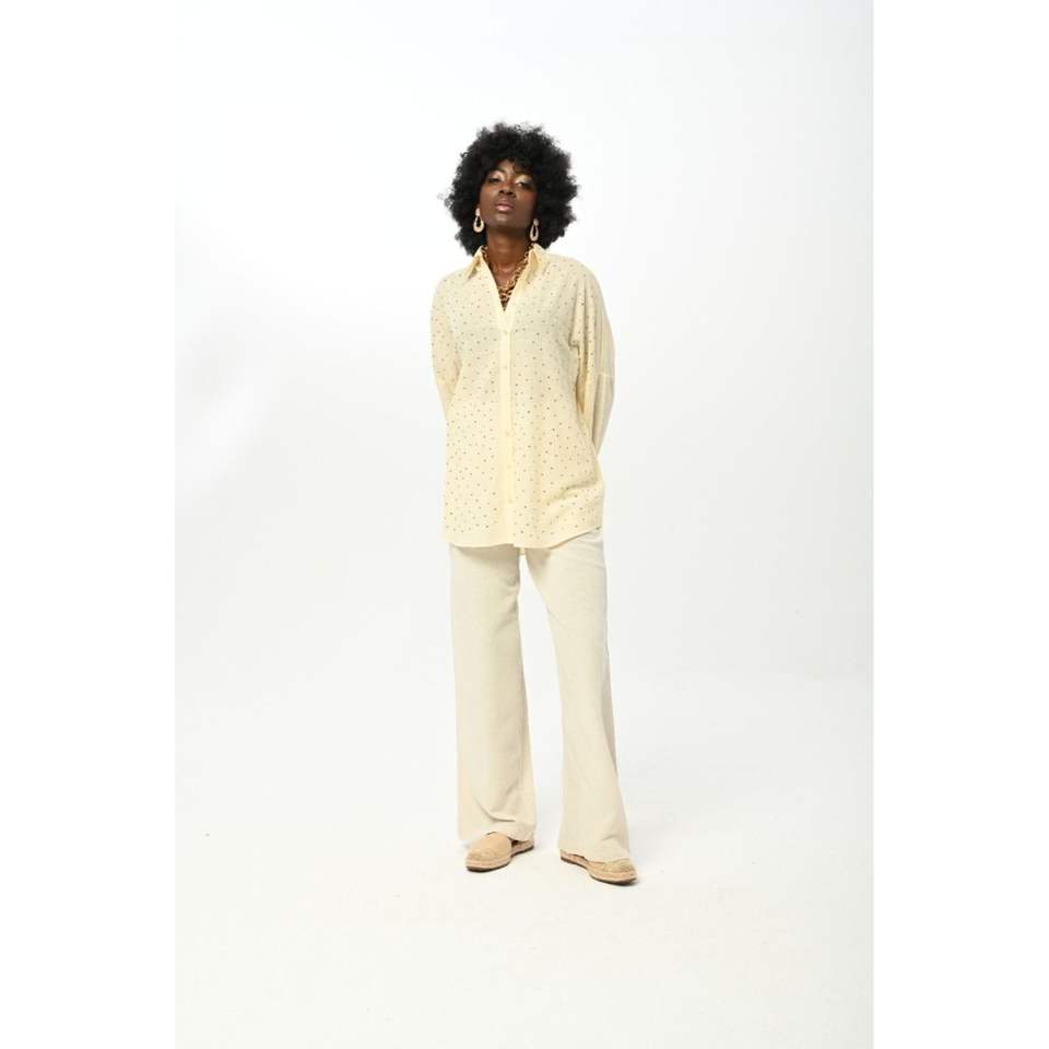 Women's Oversize Front-Adhesive Stone Embellishment Blouse