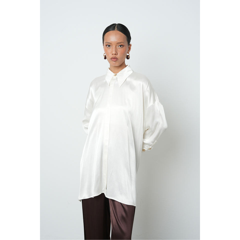 Women's Oversize Off-White Hijab Shirt Long Plain Design Fashionable Collection