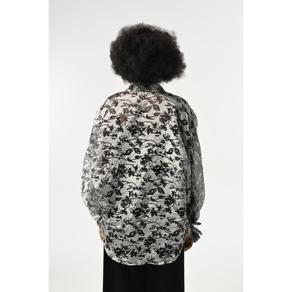 Women's Oversize Transparent Blouse with Sleeve Tie Detail and Pattern Plus Size
