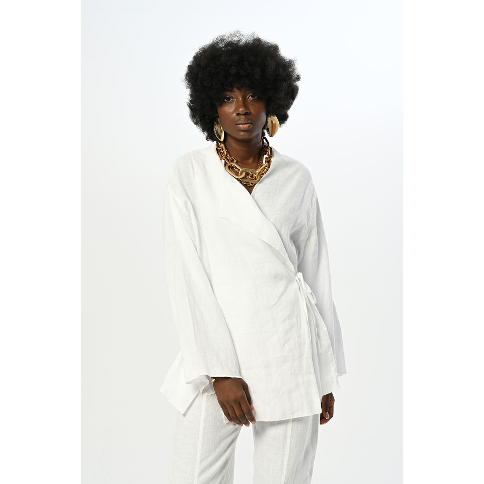 Women's Oversize White Front-Tie Shirt Single Packaged