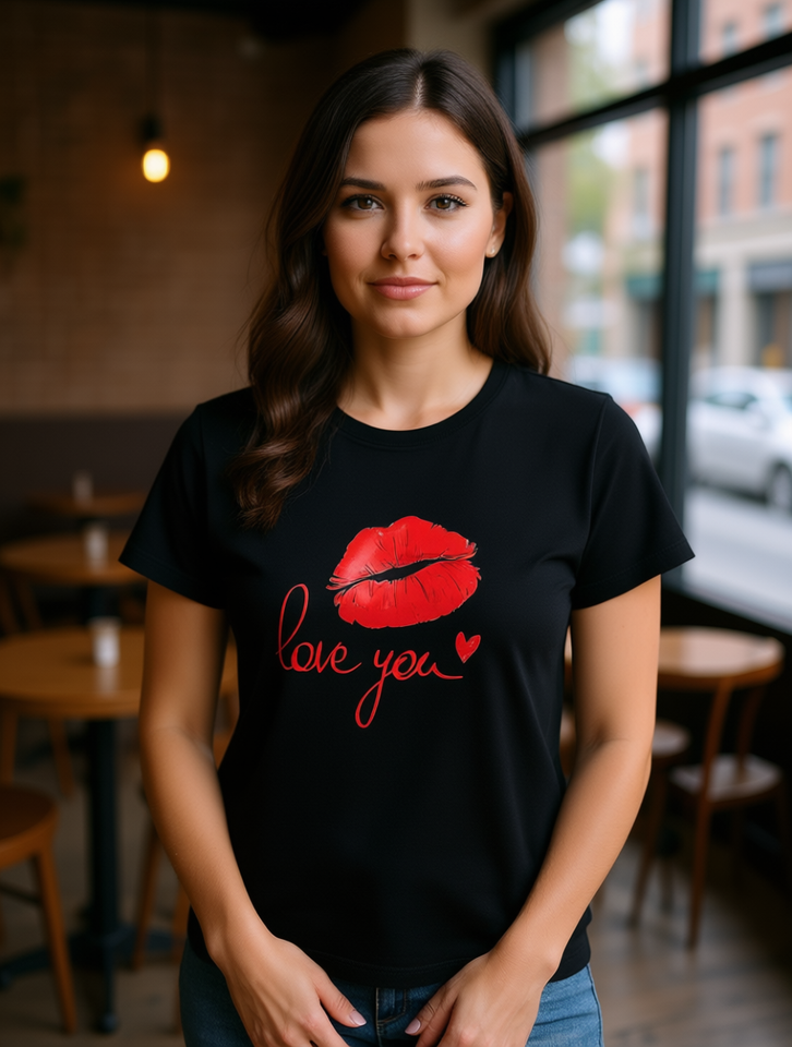 Design:LOVE YOU Red Lips and Heart Print