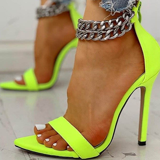 Women's PU Leather Slip-On Ankle Chain High Heel Pointed Toe Platform Pumps Thin Heels 8cm Heel Height 5cm Platform