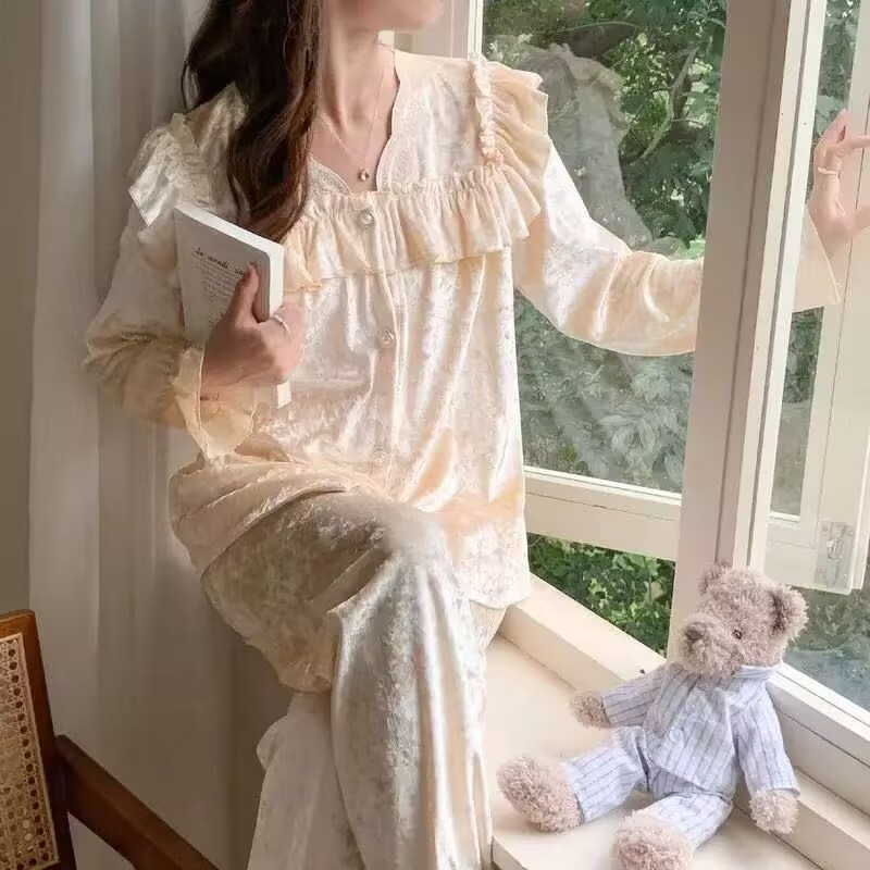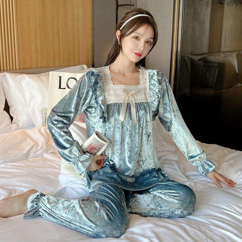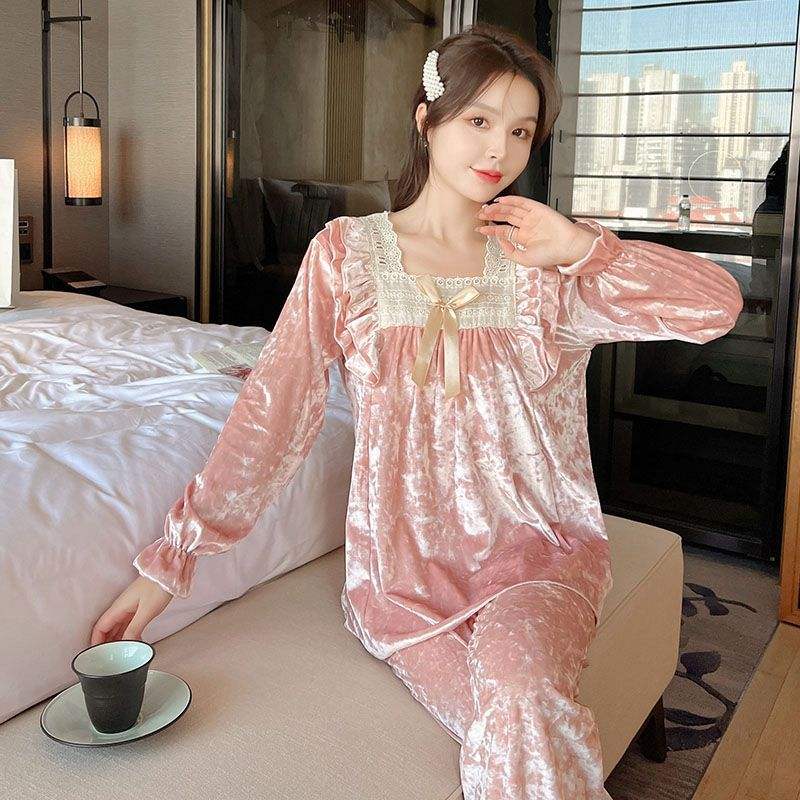 Women's Pajamas; Autumn and Winter Loose Large Size Velvet Long-sleeved Diamond Velvet Home Clothes Set