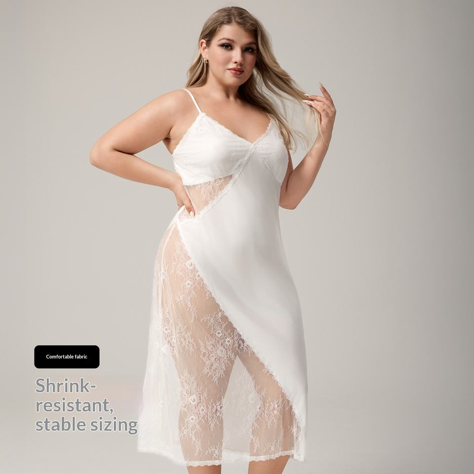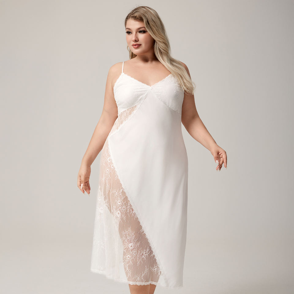 Pigiama Estivo da Donna Taglie Forti, Camicia da Notte Lunga Sexy Senza Maniche con Bretelle e Inserti in Seta e Pizzo