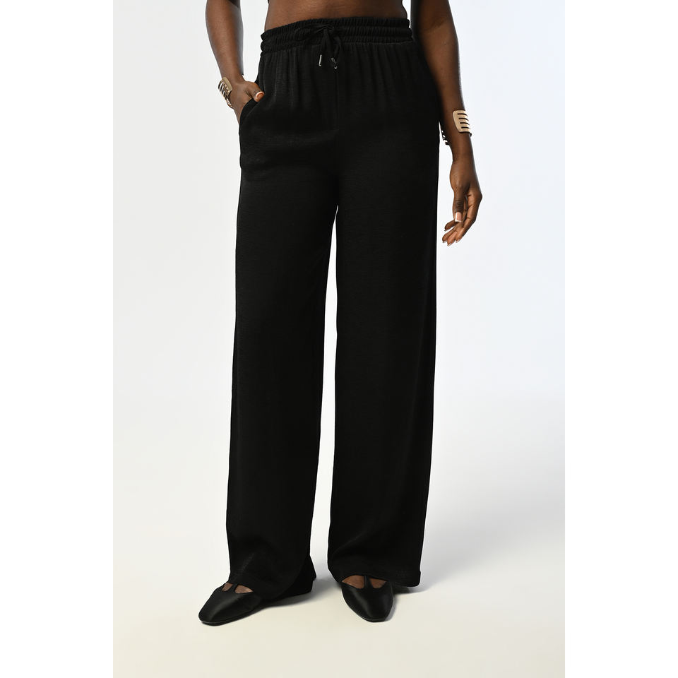 Women's Patterned Black Wide-Leg Trousers with Elastic Waistband