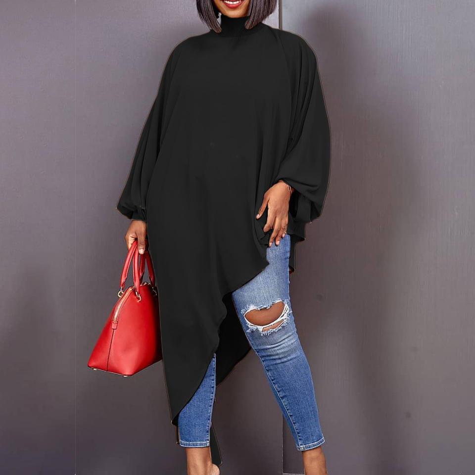 Women's Plus Size Office Dress Elegent Casual Style with Asymmetrical Hem Mock Neck Long Sleeve Solid Midi in 2XL Size