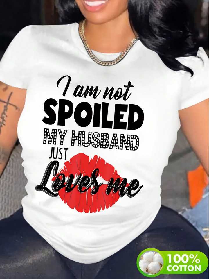 Women's Plus Size T-Shirt Round Neck Short Sleeve Lips Letters Print 100% Cotton Summer Casual Top Machine Washable Regular Fit