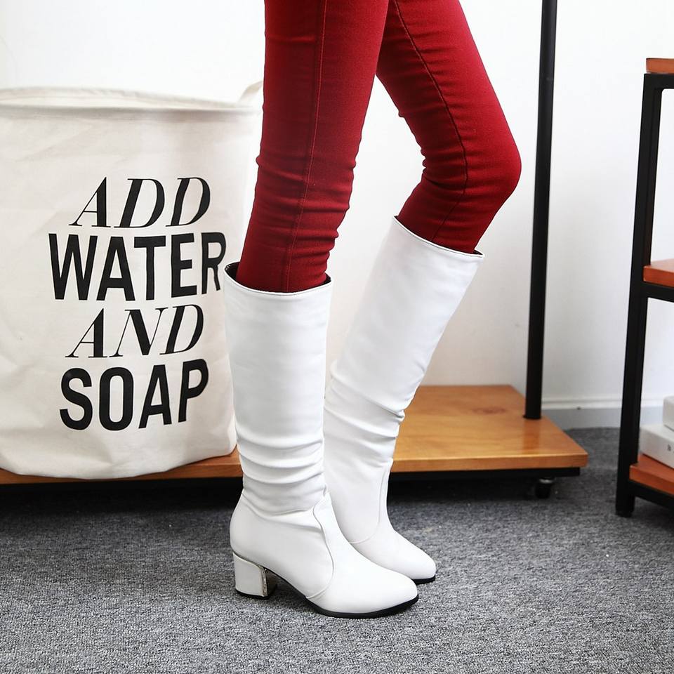 Stivali Alti al Ginocchio da Donna con Punta Affusolata, Slip-On, Plissettati, Tinta Unita con Funzione Rialzante