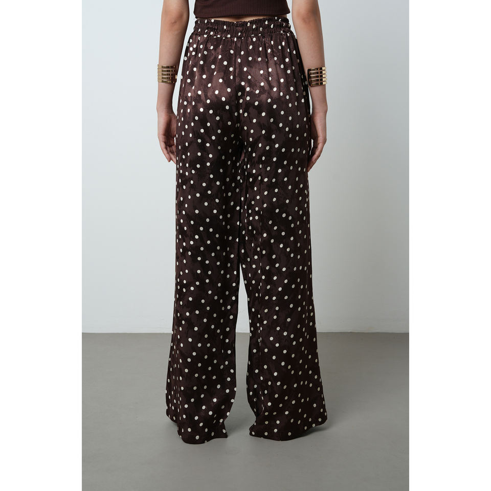 Women's Polka Dot Brown Jacquard Patterned Wide Leg Trousers