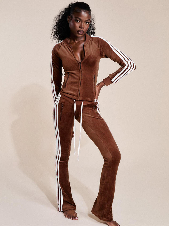 Completo Loungewear da Donna in Poliestere Due Pezzi, Maniche Lunghe, Comodo e Casual, Pantaloni a Zampa con Fodera in Pile per Relax e Sport