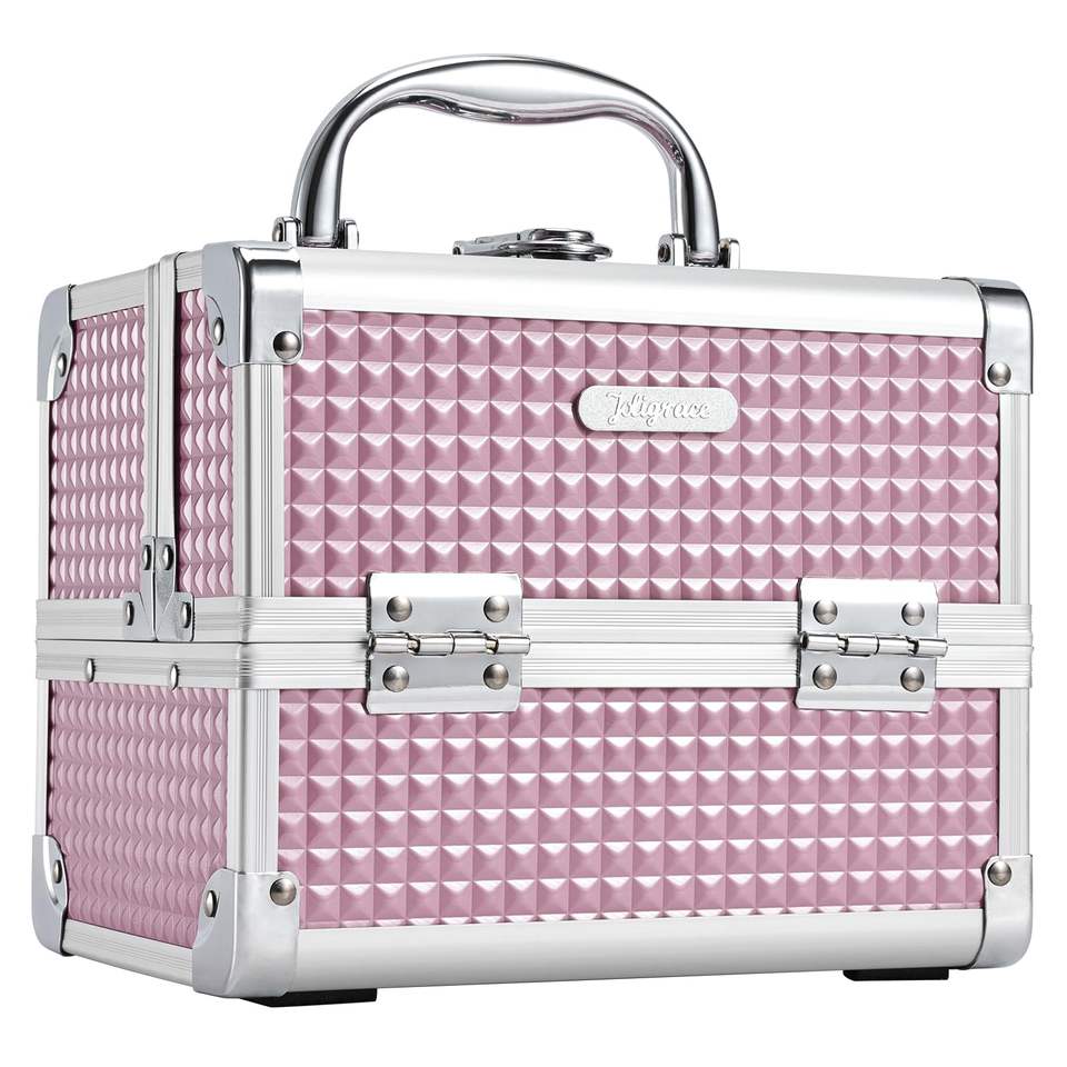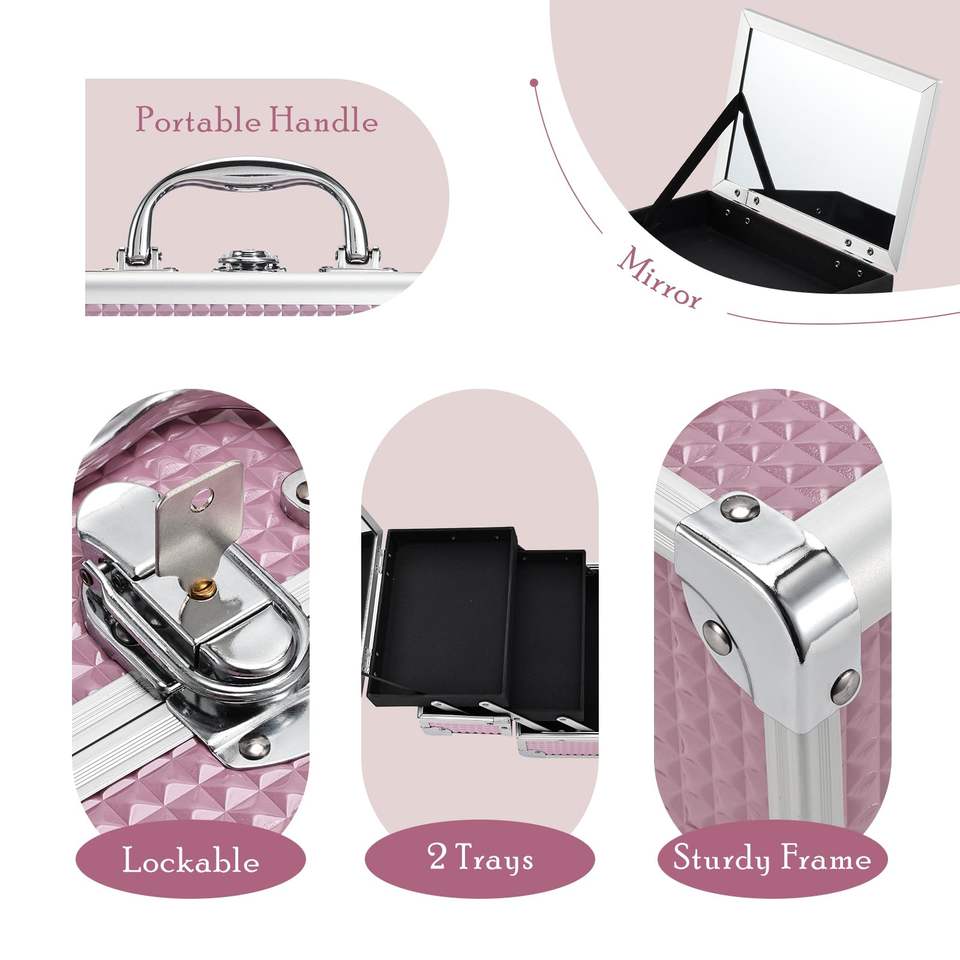 Portatile da donna custodia per il trucco con grande capacità specchio organizzatore di bellezza per il viaggio per la conservazione cosmetica delle unghie