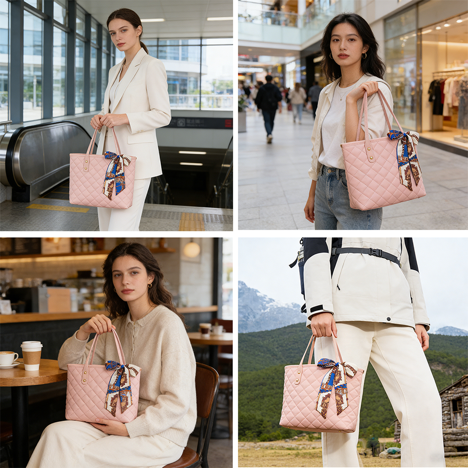 Women's Quilted Shoulder Bag - Waterproof PU Lightweight Crossbody Tote for Daily Travel Shopping