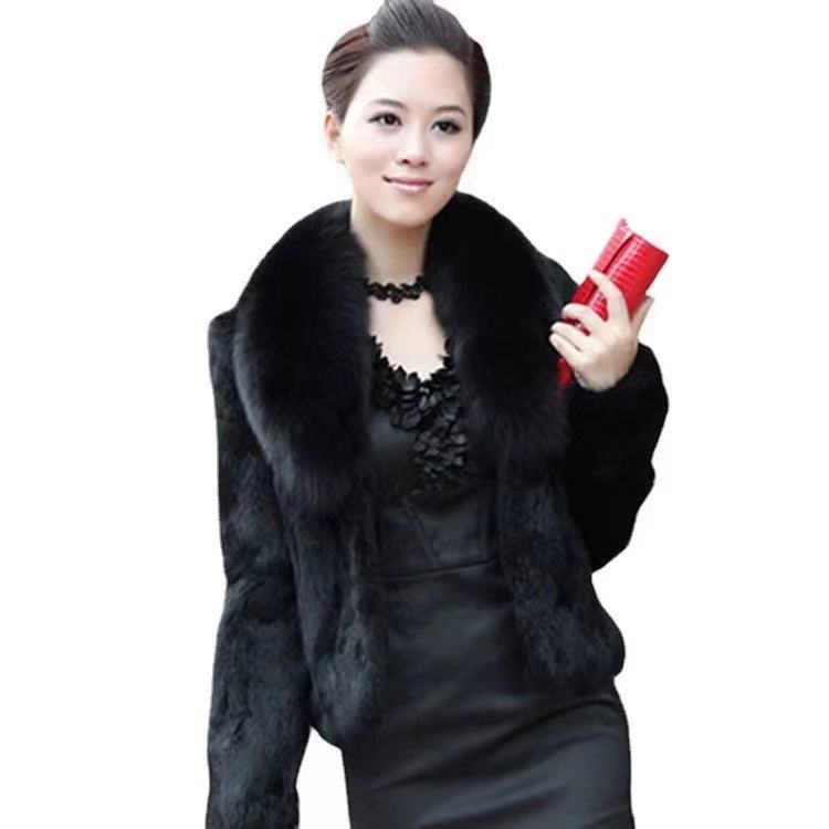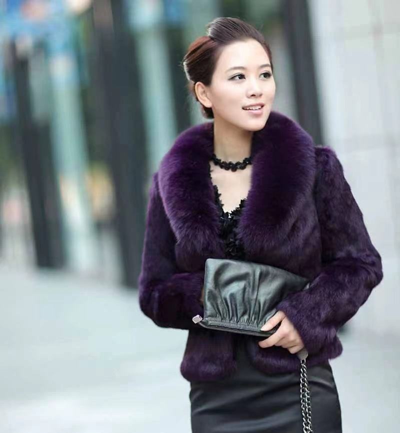 Cappotto da donna in vera pelliccia di coniglio naturale con collo di pelliccia di volpe giacca di pelliccia alla moda stile corto Outwear personalizzato taglia grande