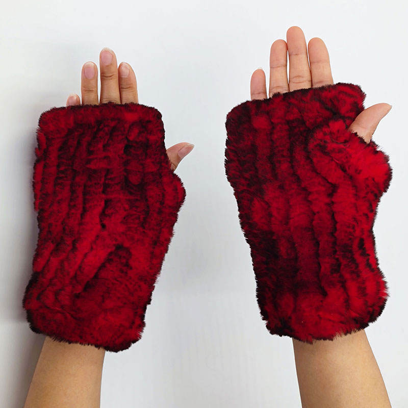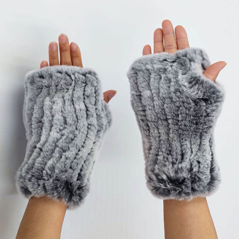 Guanti in Vera Pelliccia di Coniglio Senza Dita per Donna, Guanti Termici Invernali in Pelle Lavorata a Maglia per Ciclismo, Sci, Attività all'Aperto e Uso Quotidiano