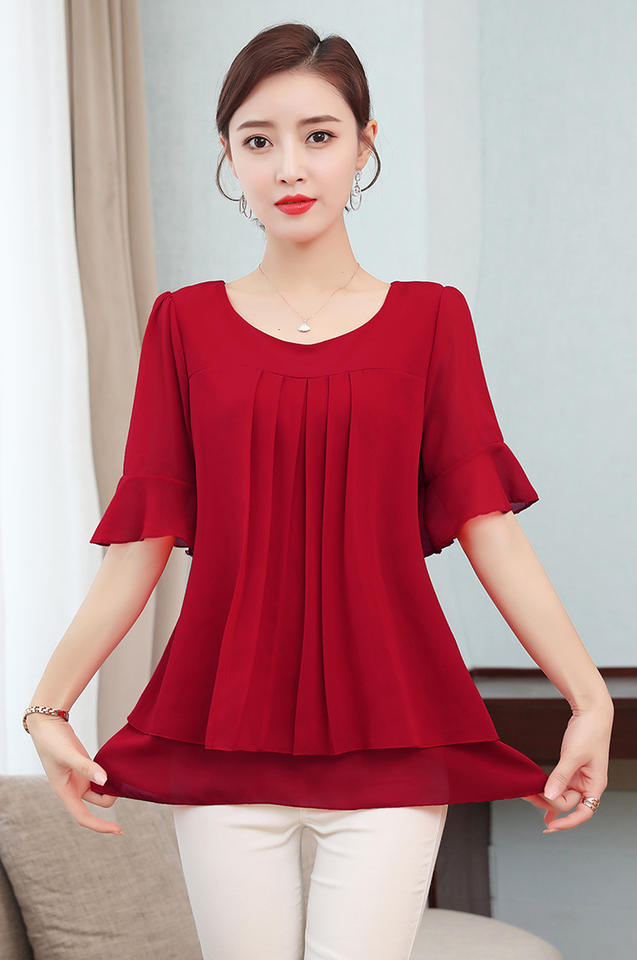 Camicia di Chiffon dolce Top Mezza Manica T-shirt da Donna Plus Size Camicette Rosso Signore Ufficio Camicie 5XL Vestiti di Estate A Doppio Strato