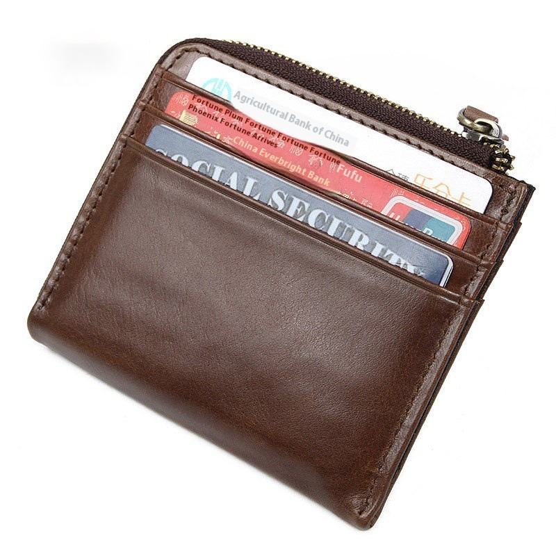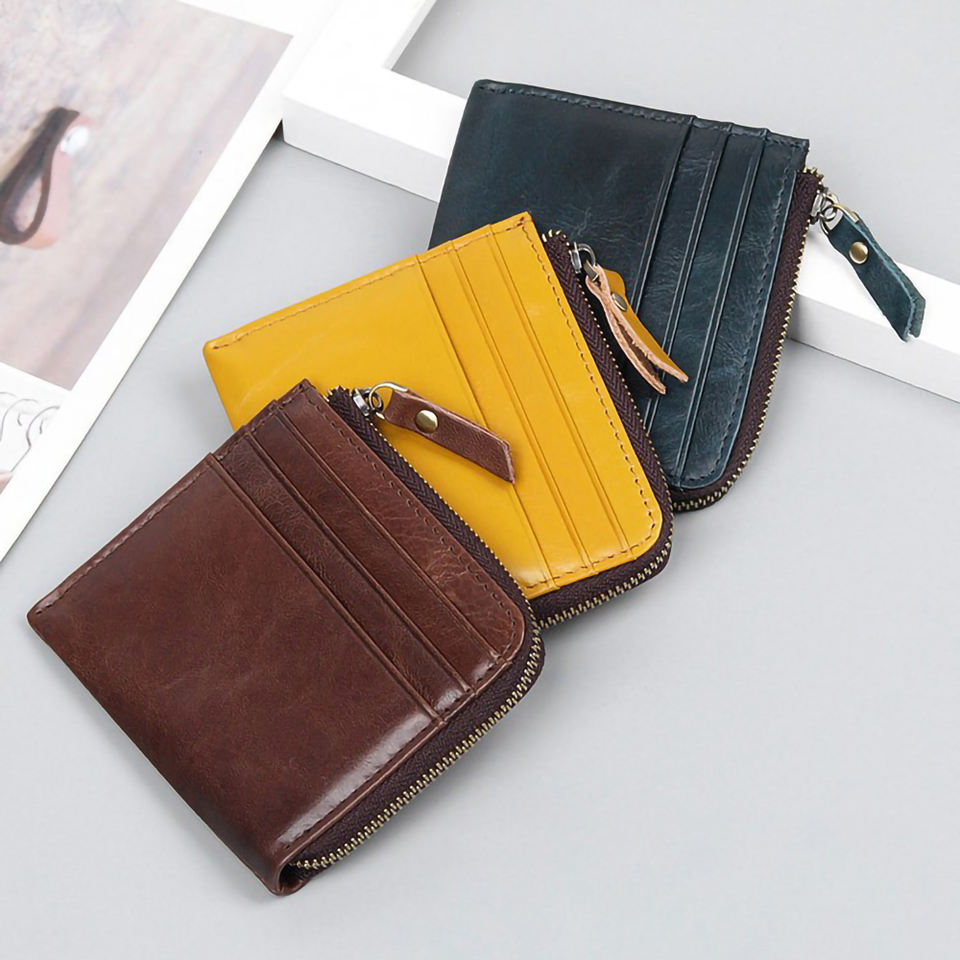 Custodia da donna in pelle compatta retrò con grande capacità e più slot per carte chiusura a cerniera piccolo porta biglietti da visita