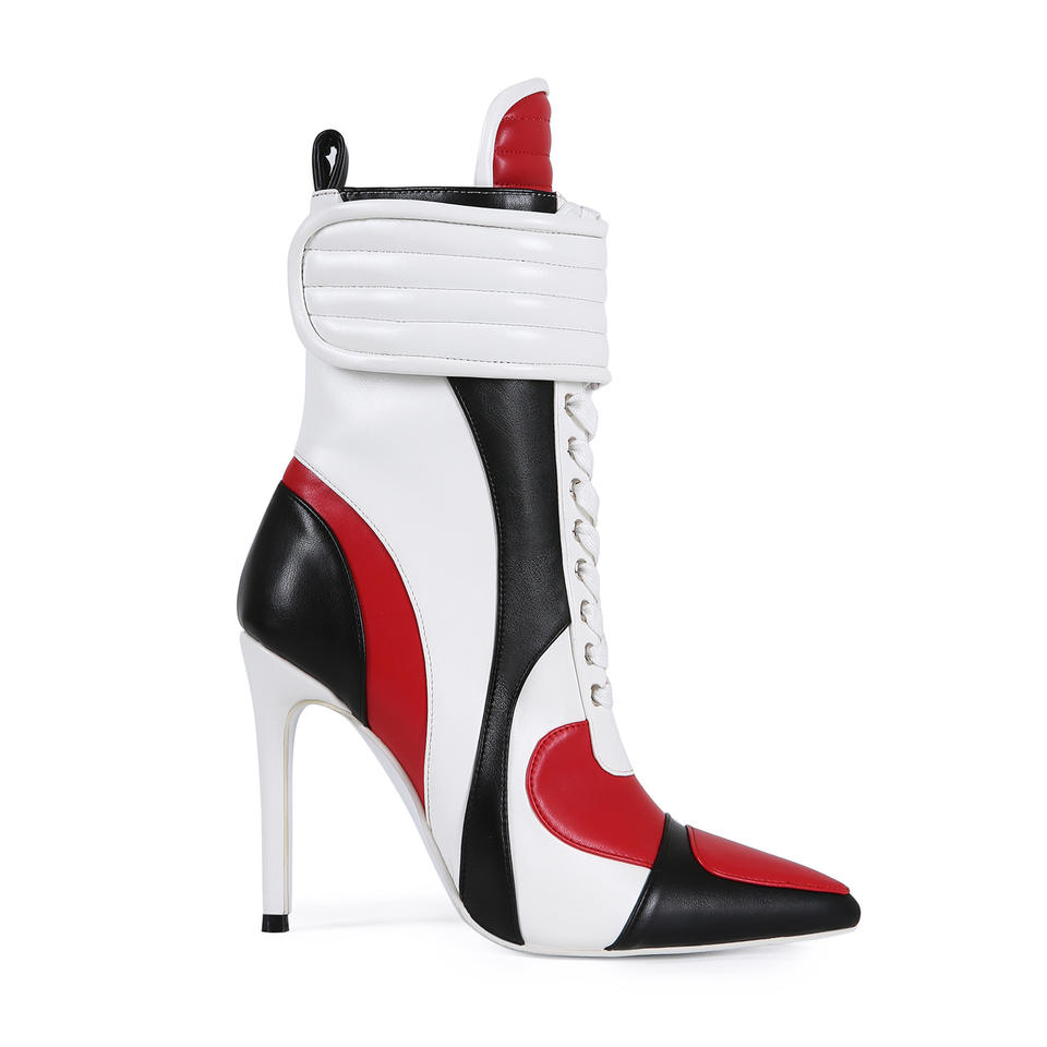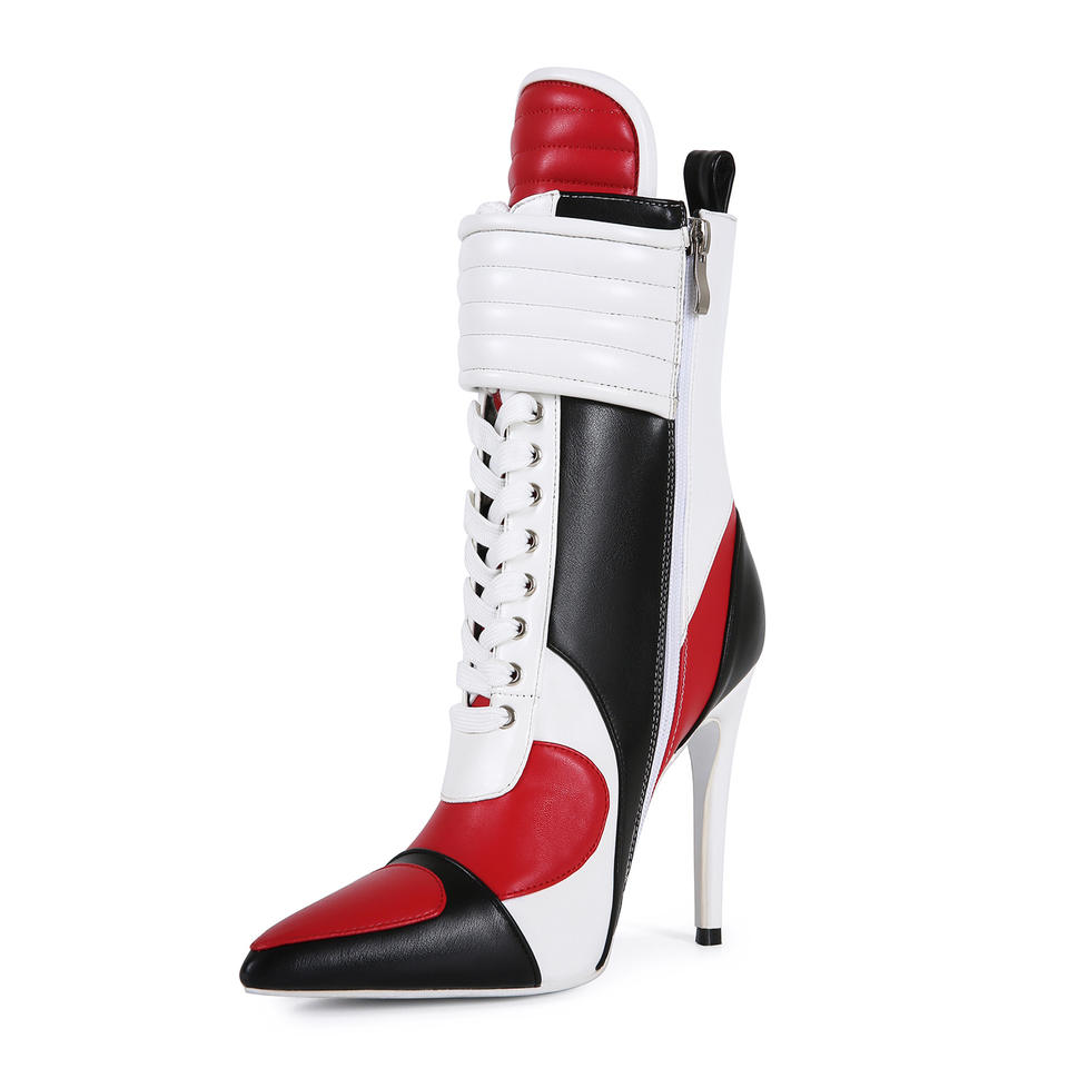 Women's Retro Sports-Style Boxing Ankle Boots Pointed Toe Lace-Up Closure Super High Thin Heel Color Matching