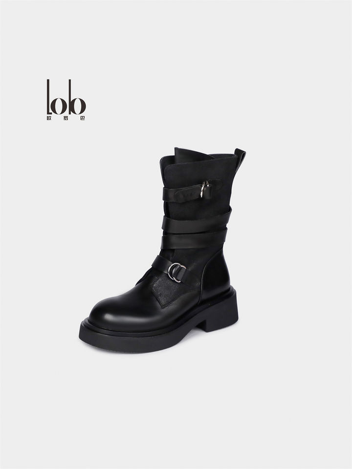 Stivali Chelsea da Donna in Vera Pelle con Suola Spessa Stile Retrò Punk, Fodera in Vera Pelle di Pecora e Tomaia in Pelle Bovina