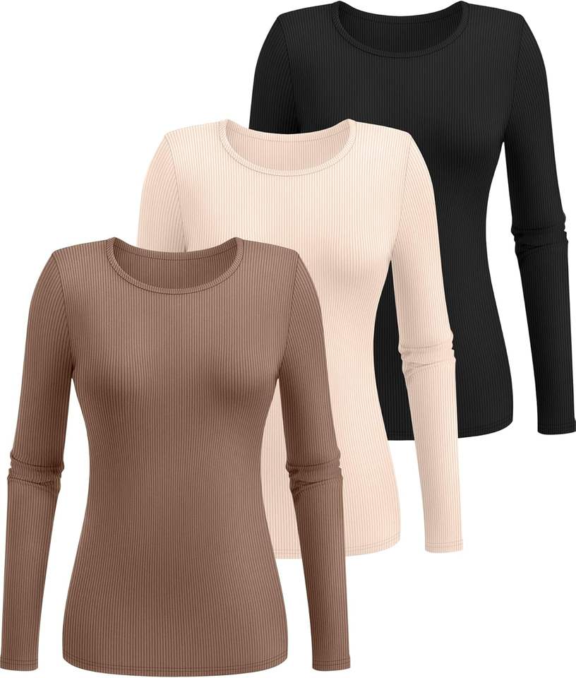Maglia a Costine da Donna con Collo Tondo, Aderente, Casual, Elasticizzata, Maniche Lunghe, Sottogiacca, Tinta Unita, Traspirante, Semplice, Primaverile