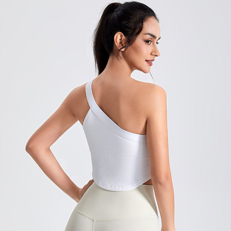 Canottiere Yoga a coste da donna a spalla singola a rapida asciugatura in maglia Casual gilet sportivo estivo da palestra taglie forti in pizzo