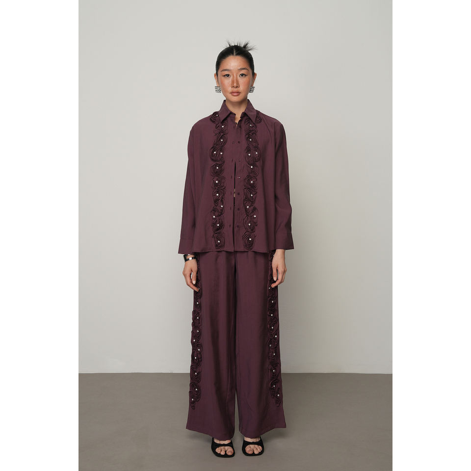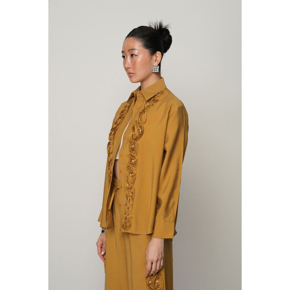 Women's Rose and Stone Stripe Embroidered Plain Shirt Design Collection