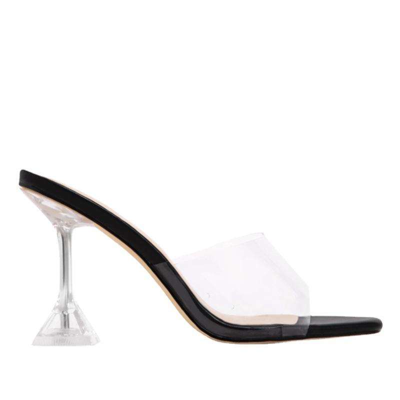Women's Sandals With High Heels Transparent Band Square Toe Outerwear Cross-border Women's Shoes Transparent Crystal Shoes