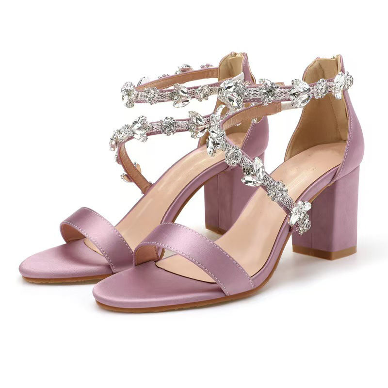 Sandali da donna in raso aperto con decorazione di cristallo blocco tacco per festa di nozze sera alla moda scarpe da donna