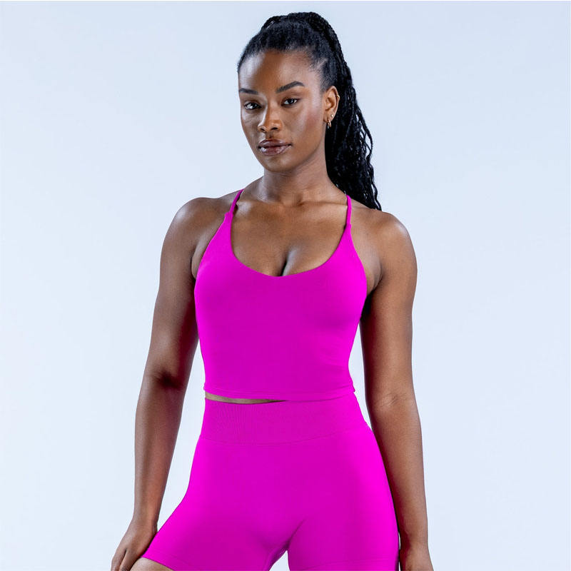 Women's Seamless Cross Back Breathable Quick Dry Lightweight Solid Nylon/Spandex Fitness Sport Halter Tank Top with Custom Logo