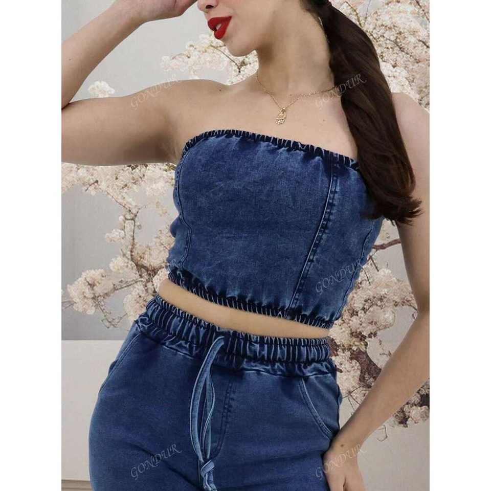 Women's Sexy Fashion Denim Closed Top with Buttons, Waist and Adjustable Closure, Casual Style Blouse